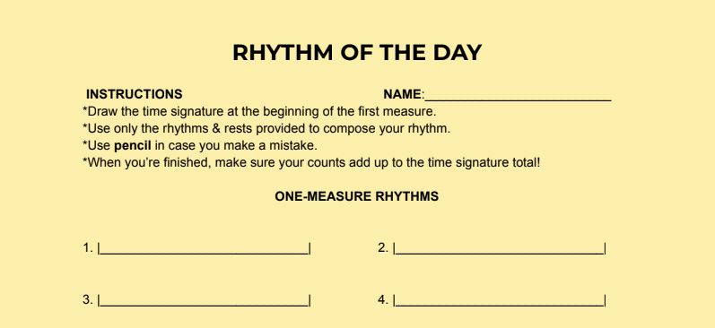 Bonus: When you reach the end of the sheet, you can collect the pages and use them as a metric for how well students grasp rhythmic concepts.